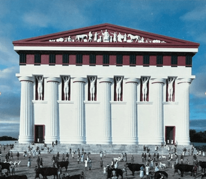 The two cities rivalled Athens in power for a century. Temples were built larger and larger to demonstrate power to Athens, with the largest towering over the town at ten stories high and lasting 2,000 years. The Atlas statues from the Temple of Zeus stand 8 metres tall and held the roof up. They can be seen in the rendering to the right.